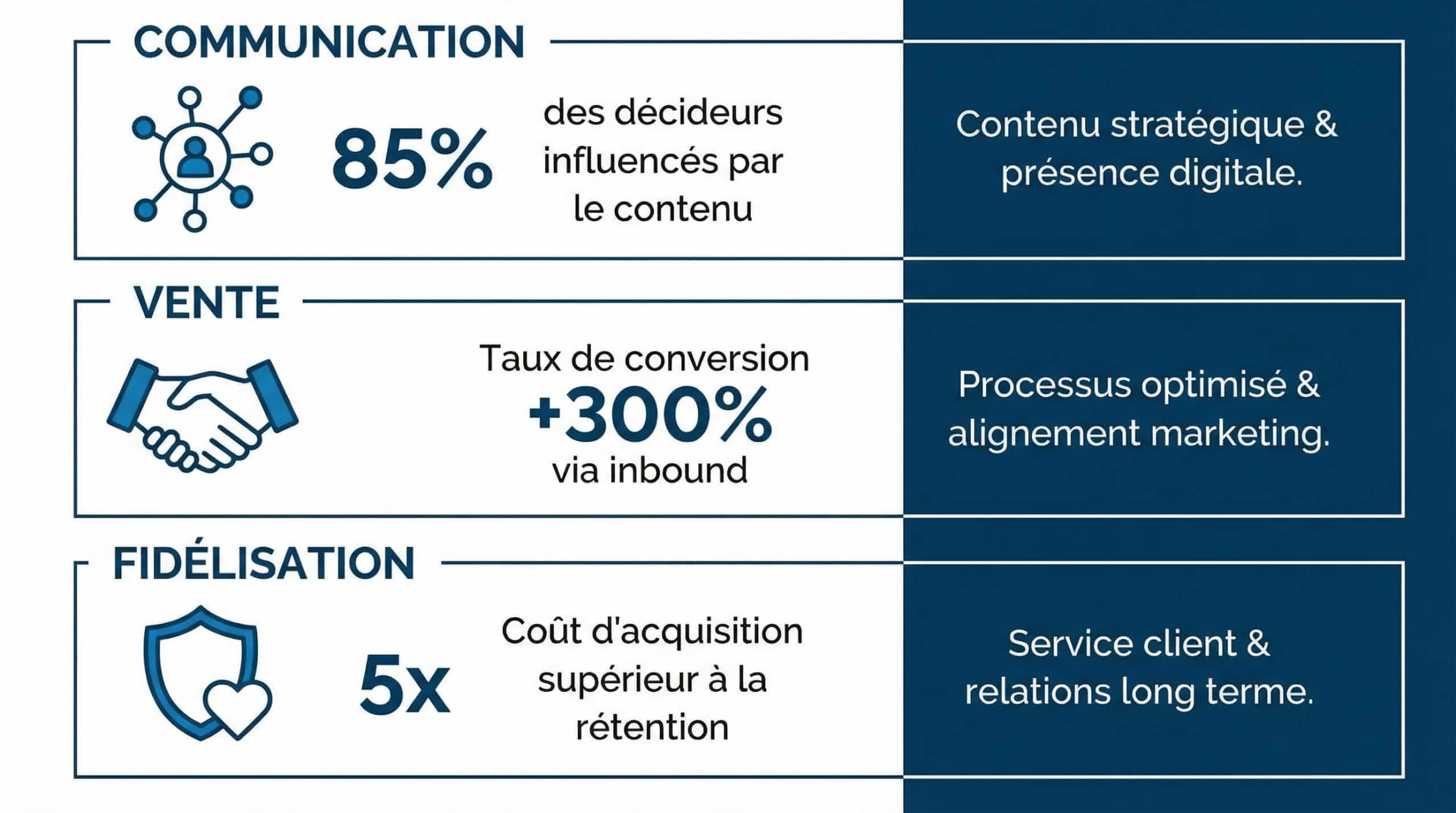 Contrairement aux agences généralistes, nous nous consacrons exclusivement aux problématiques des entreprises B2B et à la gestion des cycles de décision complexes.